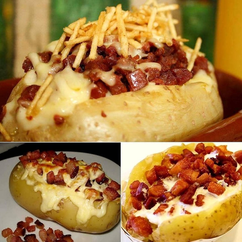 ✔ Depois de estar com as suas batatas já cavadas você deverá fritar o bacon e esperar até que fiquem bem crocantes. Faça uma mistura então do bacon com a polpa que foi retirada das batatas.