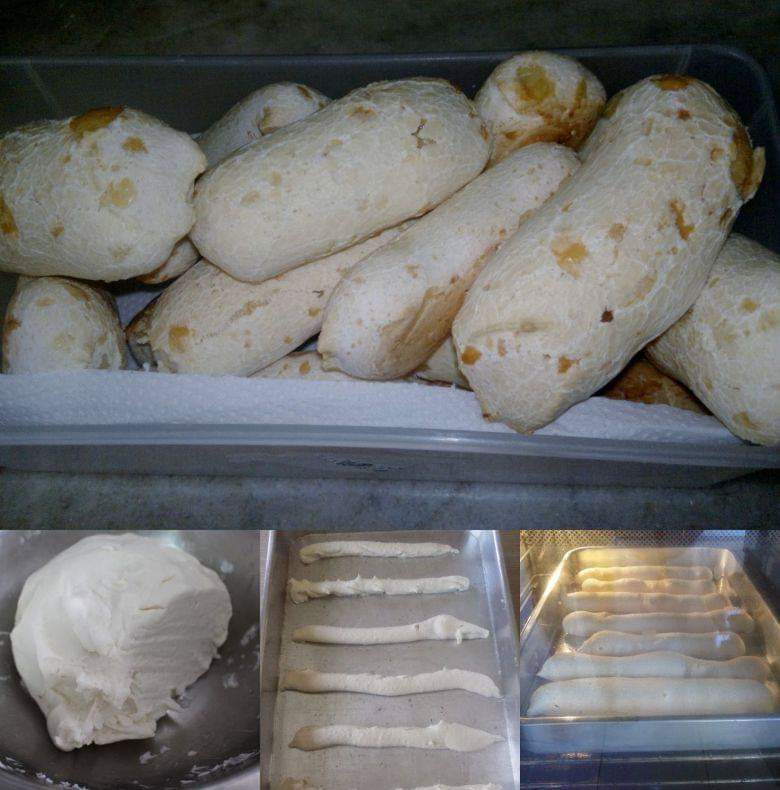 Em uma vasilha acrescente o polvilho, a água fervente e o óleo, misture bem e acrescente o sal a gosto