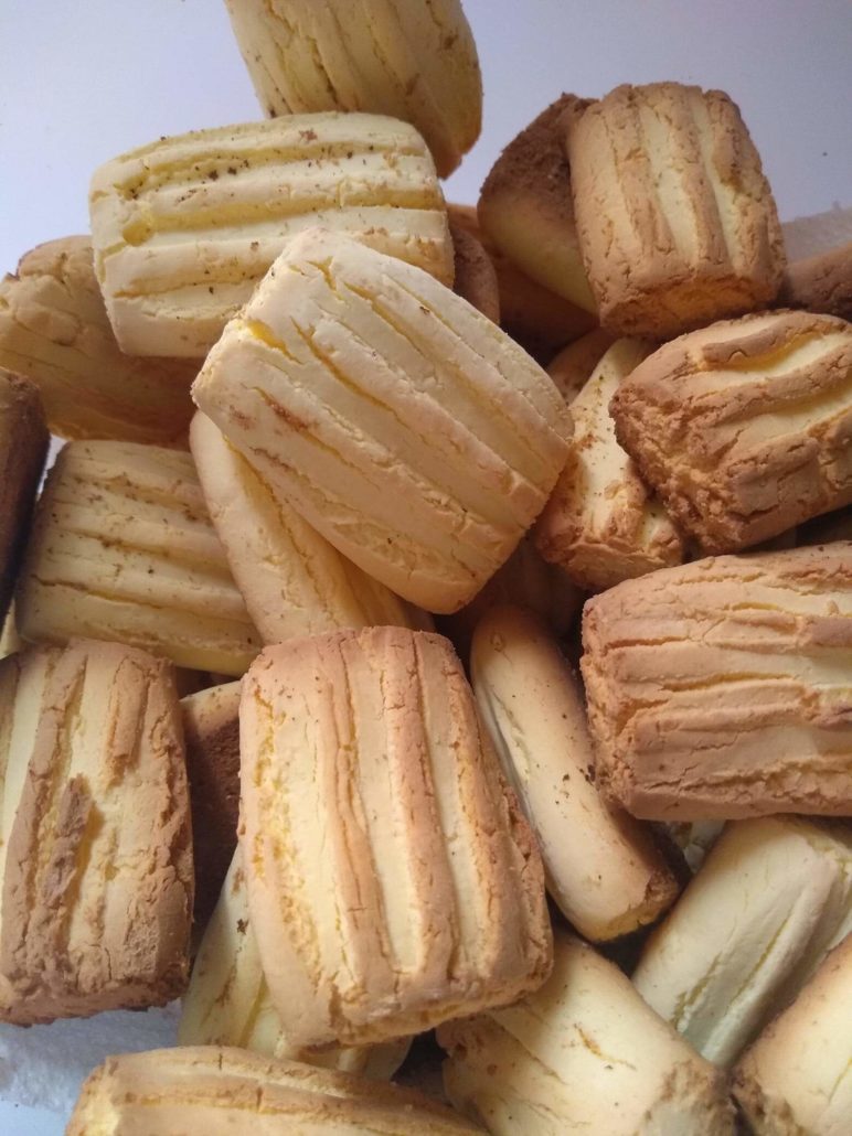 Amassa bem, enrola como “cobrinhas”, corta e aperta c o garfo.
