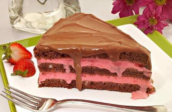 Em uma tigela, coloque os ingredientes da massa e misture até ficar homogêneo. Coloque em uma fôrma de 20cm de diâmetro de aro removível, untada e enfarinhada. Leve ao forno médio, preaquecido, por 30 minutos ou até que ao enfiar um palito, ele saia limpo. Retire do forno, desenforme e corte em 3 partes para rechear. Na fôrma em que foi assado, coloque uma parte de massa e regue com um pote de iogurte. Por cima, coloque metade do sorvete amolecido e cubra com a outra parte de massa de bolo. Regue com o outro pote de iogurte, espalhe por cima o restante do sorvete e cubra com a outra parte de massa. Para a cobertura, misture o chocolate derretido e o creme de leite. Espalhe por cima do bolo, leve ao congelador por 4 horas e sirva.