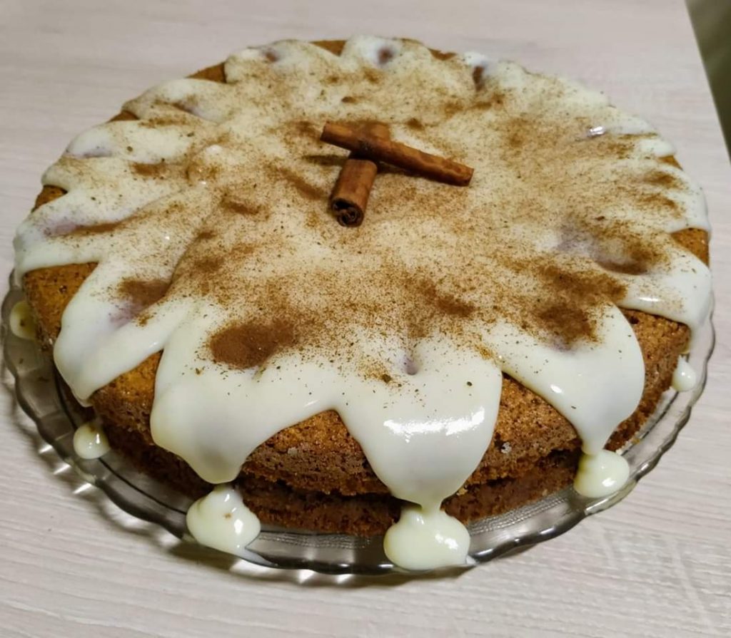 Para o recheio, junte todos os ingredientes e leve ao fogo até ficar no ponto de brigadeiro mole. Espere esfriar para rechear o bolo. Finalize com uma parte do creme por cima e polvilhe com canela.