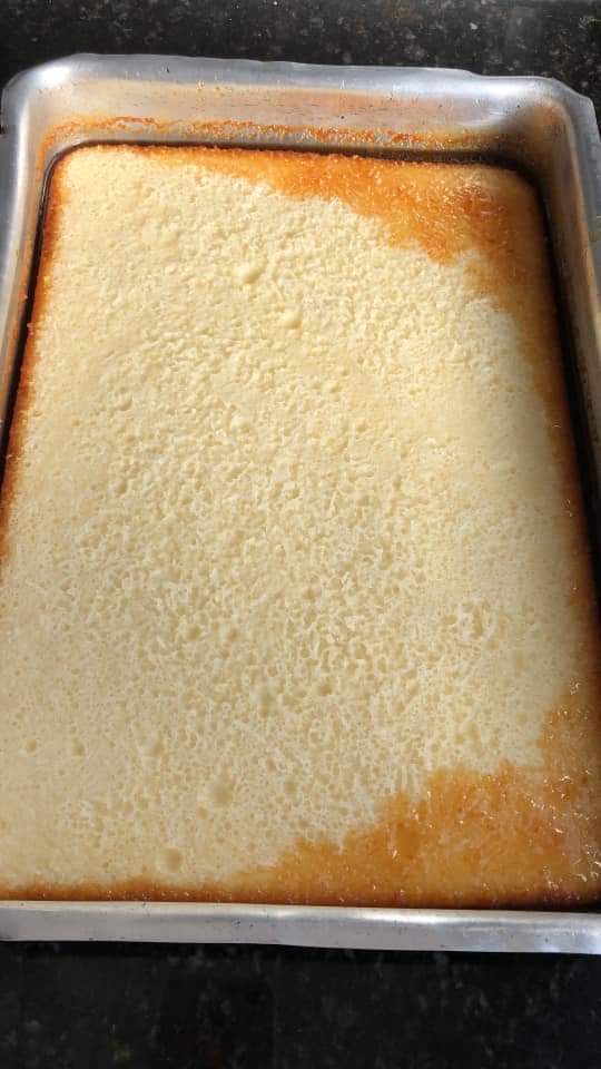 Massa; Bater todos os ingredientes da massa no liquidificador eu coloco em uma forma quadrada e asso em banho maria por 45 minutos, forno aquecido em 240 graus. Coberto com papel alumínio.
