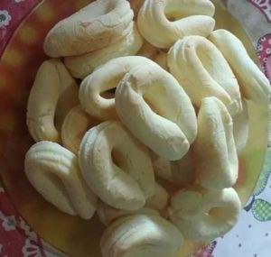 Ingredientes 2 xícaras de polvilho azedo Meia x ( 100 ml) de água 1 colher de óleo 1 colherinha de sal 1 ovo Modo de fazer: Ferva a água, sal e óleo… Coloque o polvilho numa tigela, jogue a água fervendo, misture bem. Vai ficar como uma farofa. Junte o ovo, sove e forme os …