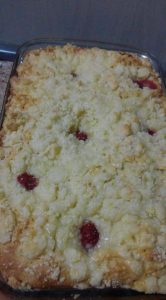 Ingredientes Massa: 2xic farinha 1 ovo 1 fermento pra bolo 4 colher de açucar Meia xícara de leite morno 1 colher de margarina FAROFA: 1 colher de nata 2 colher de farinha 2 colher de açucar Recheio Morango e leite condensado Assar no forno 180° por 35 minutos Coloque o leite condensado assim que desligar …