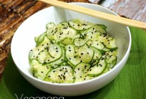 Ingredientes 3 pepinos japones 2 colheres sal 250 ml vinagre de arroz 1 xícara açúcar( demerara ou cristal) Sementes de gergelin Lavar bem os pepinos e cortar com casca no fatiador ou com faça em fatias bem fininhas Colocar o sal misturar e deixar descansar por uns trinta minutos . Enquanto isso por numa panela …