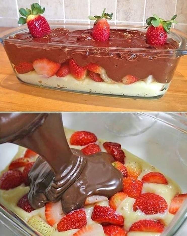 4. Espalhe sobre os morangos, cobrindo tudo.