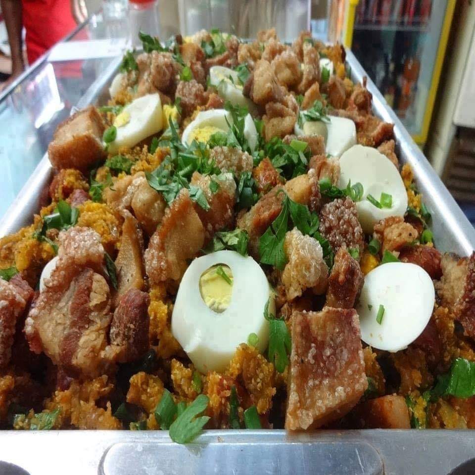 tudo sendo feito na mesma panela. Retire a couve e, se necessário, acrescente um pouco da gordura do torresmo pra fritar os ovos (mexidos).
