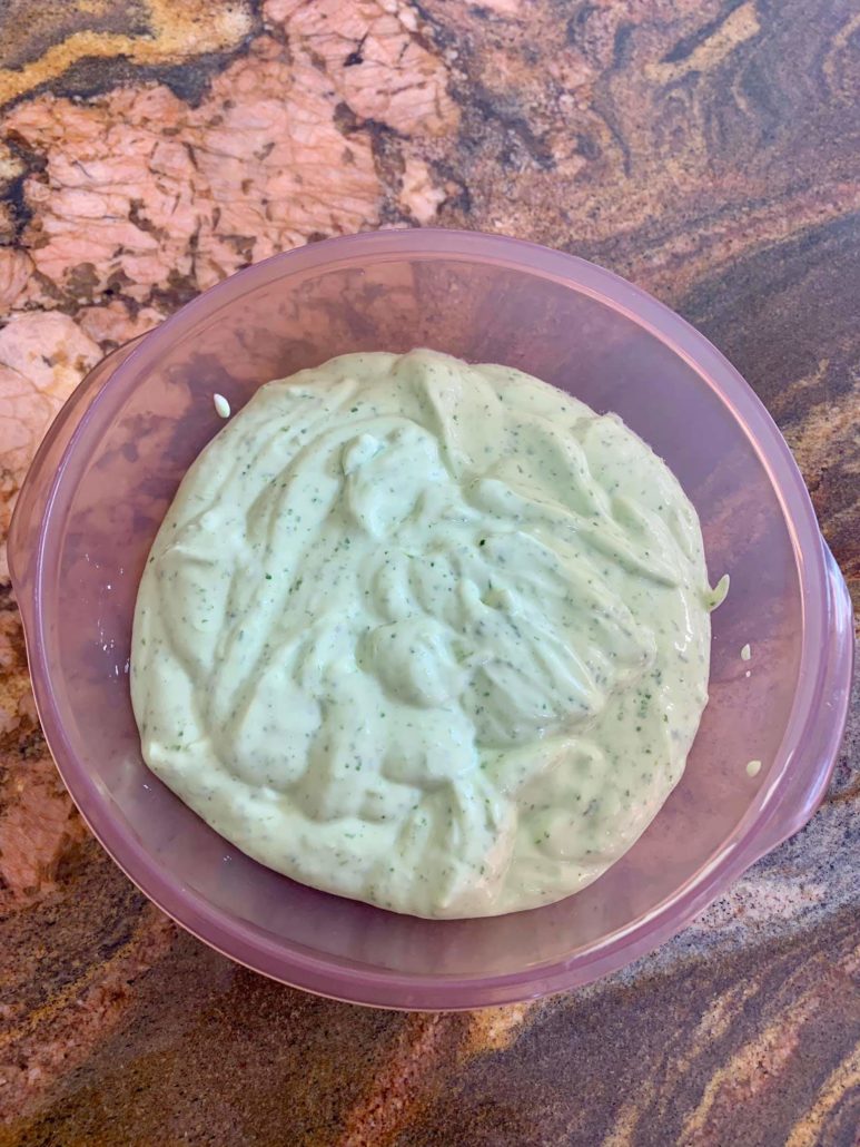 1 xícara de salsinha, 1 colher de sopa de mostarda, 1 colher de sopa de limão, 1 dente de alho, 1/2 xícara de leite bem gelado, 1 xícara de óleo, sal a gosto, bater no mixer, e ir colocando o óleo aos poucos, quem não tem mixer pode ser liquidificador, faço no mixer pq em menos de 2 minutos está pronta, quem não gostar de salsinha pode fazer sem, da certo também, está é aquela, perfeita pra comer com lanches. Rendimento, mais ou menos um pote daqueles de maionese pronta, dura 1 semana na geladeira sem problema.