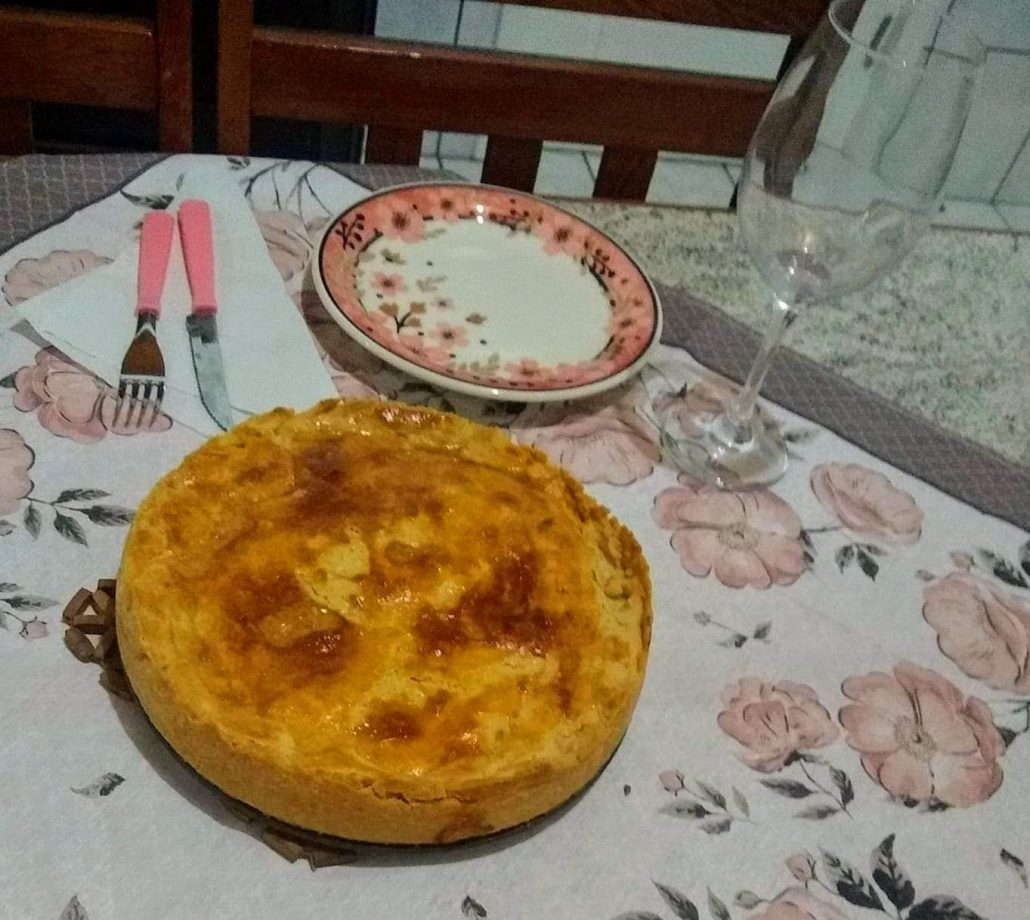 Pega a forma do fundo removível e vai colocando com os dedos mesmo nela e vai moldando na forma é bem fácil não tem erro, coloca no fundo e laterais, coloca o recheio de sua preferência, para cobrir, pega uma sacola limpinha, coloca a massa dentro com o rolo vc passa por cima para abrir essa massa, sem a sacola não dá, pq gruda no rolo, é uma massa gordurosinha, abre a massa na forma que falei e cobre a torta e ajeita com as mãos, pincela com a gema e coloca para assar no forno pré-aquecido por 30 minutos em 180 graus.