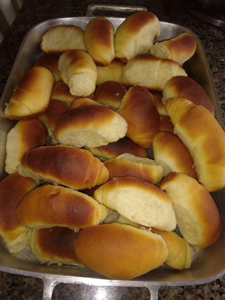 Junte a farinha de trigo com a mistura batida em uma bacia ,sove a massa por uns 10 minutos,tampe e deixe crescer até dobrar o volume,modele os pães, tampe e deixe crescer novamente,até dobrar de volume