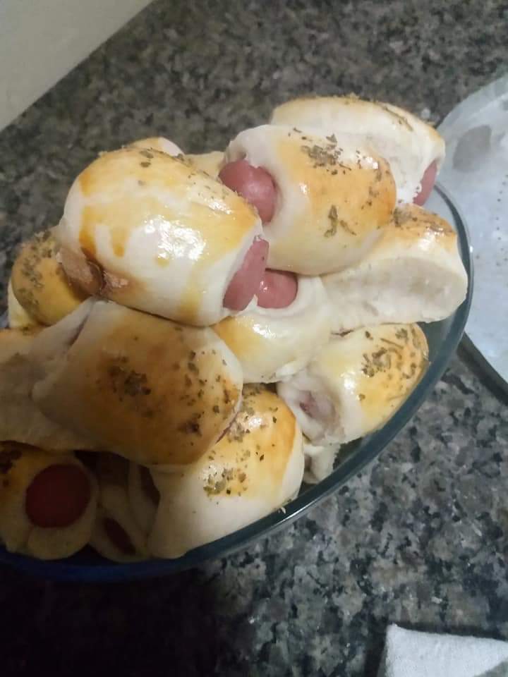 Em uma tigela misture todos os ingredientes e por ultimo a farinha aos poucos, vai fica uma massa bem macia, deixe descansar a massa com um pano em cima dentro do forno por 30minutos . E depois só amassar um pouco e com um Rolo e fazer os enroladinhos passe a gema pra dar uma corsinha e eu boto orégano a gosto unta uma forma com margarina e farinha e colocar no forno 180°grau por 20 minutos !