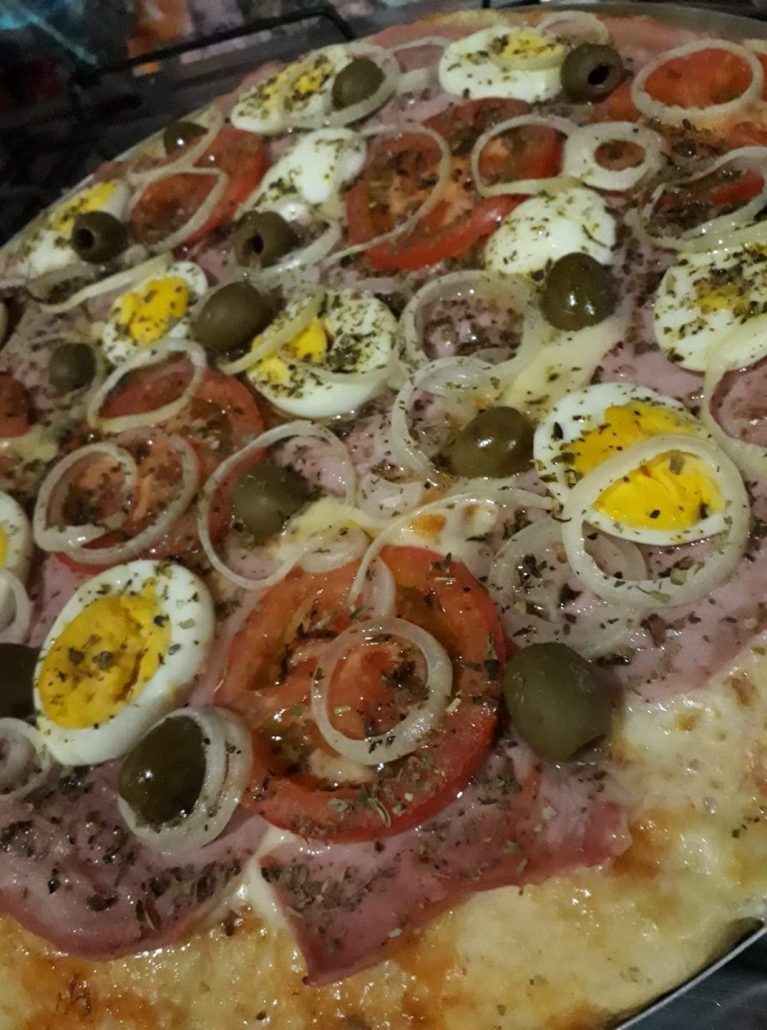 Abra a massa com um rolo,põe na forma,adicione molho de tomate e o recheio de sua preferência, leve ao forno pré aquecido até que as bordas doure.
