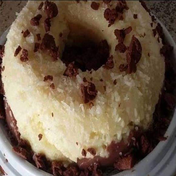 Coloque em uma panela e misture o coco ralado, leve ao fogo brando, mexendo até engrossar