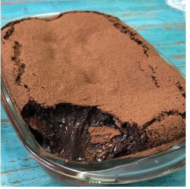 Misture bem, unte uma travessa com manteiga e cacau em pó e jogue essa massa, asse em forno pré-aquecido á 230 graus por 15 minutos, não deixe assar demais pra não virar bolo.
