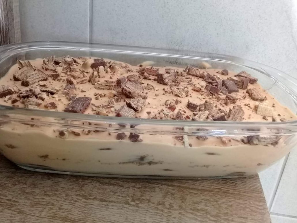 *Mistura tudo e molha as bolachas no leite,depois e só montar.